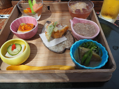 夏らしいメニューでビールが又進む、追加で頼んだ冷酒が又なんとも言えん。最後、デザートを食べ、お茶を頂き店を出る、結構満足出来るコースやった。その後、JRで帰るつもりなんで腹ごなしに新京極通りをぶらぶらし、地下鉄の烏丸御池駅まで上がって行く途中で娘がカキ氷がを食べたいって云う、スマホで検索したら丁度烏丸御池駅の近くに甘味処がある。