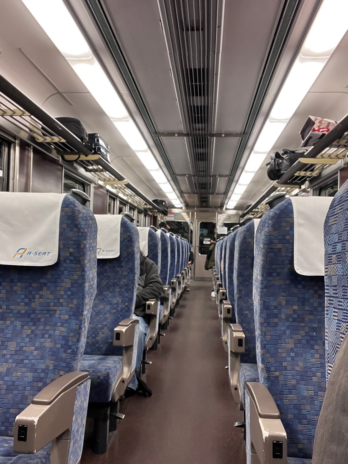 今回の旅では状況次第で特急にするか普通にするかを決める様にしたから、金沢行き以外の帰りの列車は、行きの列車内や現地に到着後、e5489を使って座席指定を取った。